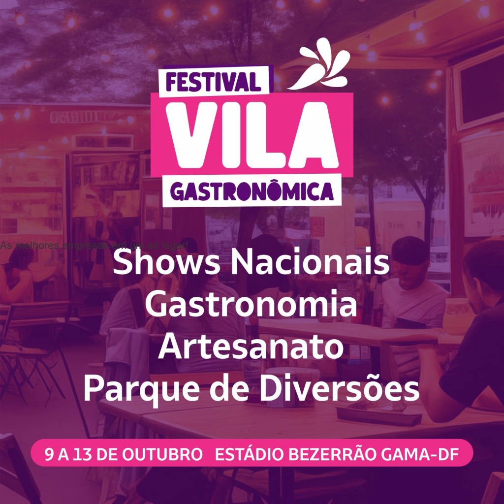 Entre os dias 9 e 13 de outubro, o Gama será palco do Festival Vila Gastronômica, um evento que reúne gastronomia, música ao vivo, artesanato e parque de diversões. Com entrada gratuita, o festival acontecerá no estacionamento do Estádio Bezerrão, proporcionando cinco dias de festa para toda a família.