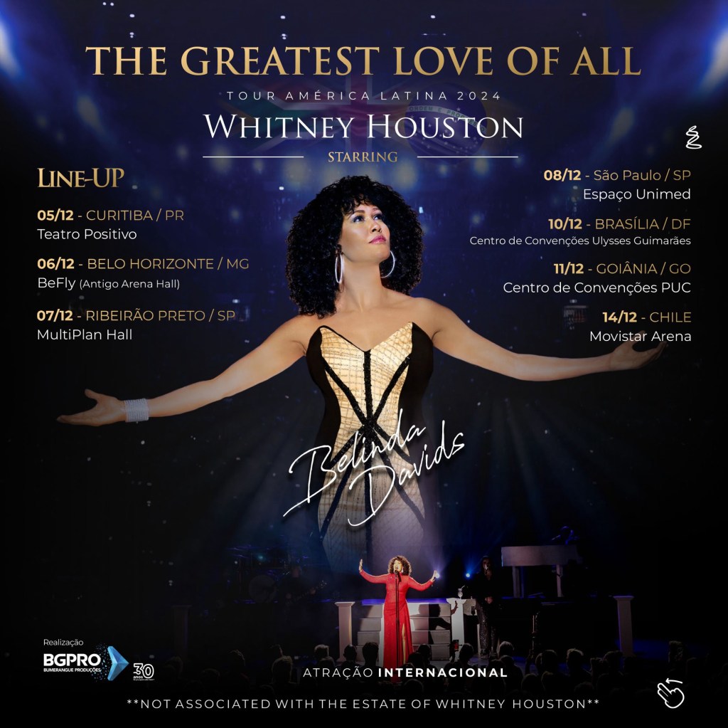 Clássicos como “I Will Always Love You”, “Greatest Love of All”, “I Wanna Dance with Somebody” e muitos outros ganham vida de uma forma que poucos artistas conseguem alcançar, deixando em cada local sua marca e momentos imperdíveis.