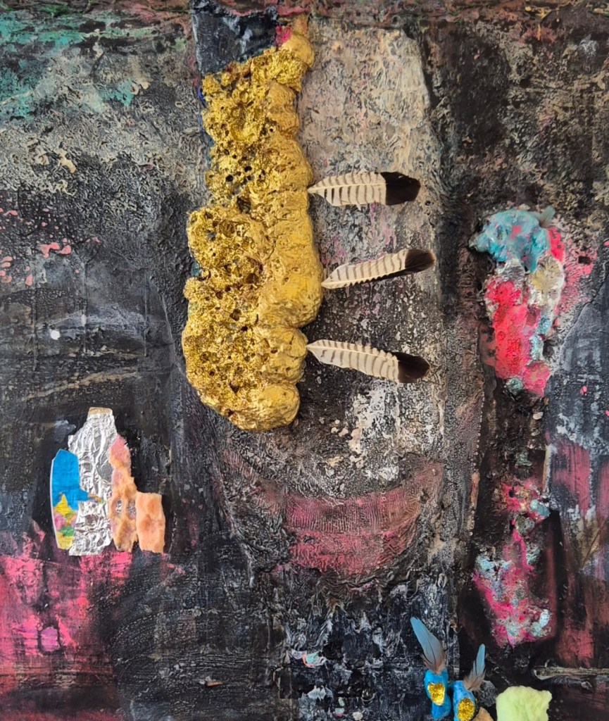 Sobre a segunda série, “Des-nu-dar”, a artista afirma tratar-se de contar a sua própria história. A narrativa dos trabalhos mistura uma “costura” dessas histórias, criam novos significados e reinterpretam o passado ou a reutilização das memórias. “Neles, me utilizo da assemblage, uma técnica que permite criar obras únicas e complexas, combinando objetos e materiais diversificados que vou coletando, colecionando e sendo presenteada com as fotografias antigas, objetos, livros, papéis… Assemblage cria uma camada extra de profundidade e significado”, ressalta a artista. “A escolha dos objetos ecoa com a história, faço experimentações e ajusto a composição.