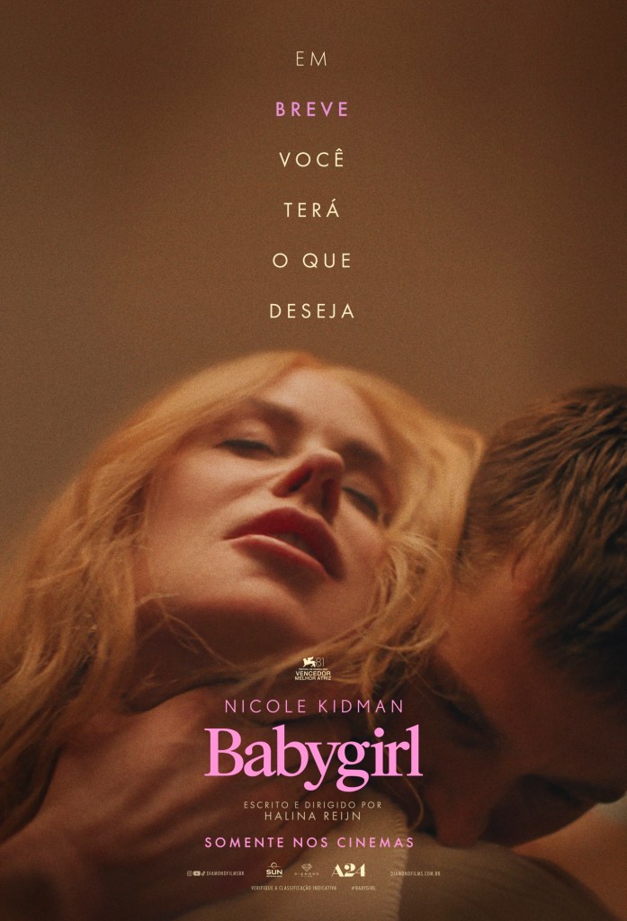 BABYGIRL estreia dia 9 de janeiro em todo Brasil e conta com distribuição da Diamond Films, a maior distribuidora independente da América Latina. O longa será o primeiro título distribuído pela empresa no ano de 2025.
