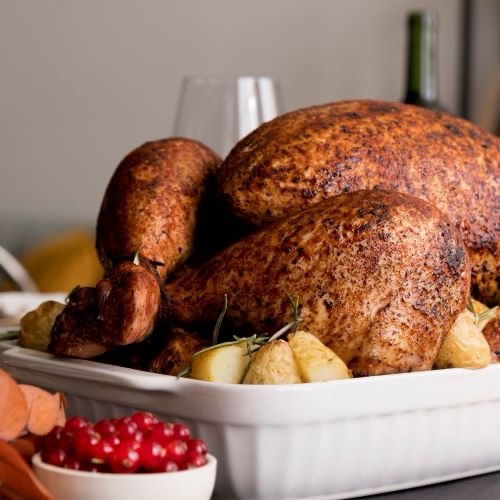 Peru assado com mirepoix e manteiga temperada (por chef Romão Olinda – Olinda Bar e Restaurante)