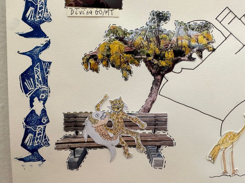 “A residência artística incentivou a aproximação entre artistas e moradores de Britânia, promovendo trocas significativas entre diferentes experiências e realidades”, declara Suyan de Mattos, curadora da mostra, que reúne 9 trabalhos, incluindo gravuras, fotografias, instalações, objetos e pinturas.