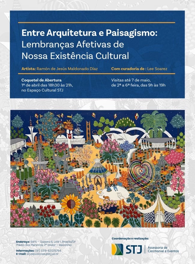 O Espaço Cultural STJ inaugura, no dia 1° de abril, a partir das 18h30, a exposição, do artista Ramón Maldonado Díaz. A abertura da mostra acontecerá na sede do Superior Tribunal de Justiça (STJ), no mezanino do Edifício dos Plenários (segundo andar).