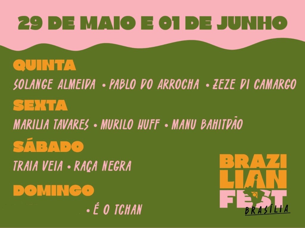 É a estreia do festival em Brasília, marcando o retorno do Brazilian Fest  após mais de três décadas de história. Mais do que shows, o evento entrega pertencimento. Com estrutura de grandes festivais pagos — mas sem catraca —, o projeto é um símbolo de que cultura é direito, e o palco também é de todos.É a estreia do festival em Brasília, marcando o retorno do Brazilian Fest  após mais de três décadas de história. Mais do que shows, o evento entrega pertencimento. Com estrutura de grandes festivais pagos — mas sem catraca —, o projeto é um símbolo de que cultura é direito, e o palco também é de todos.