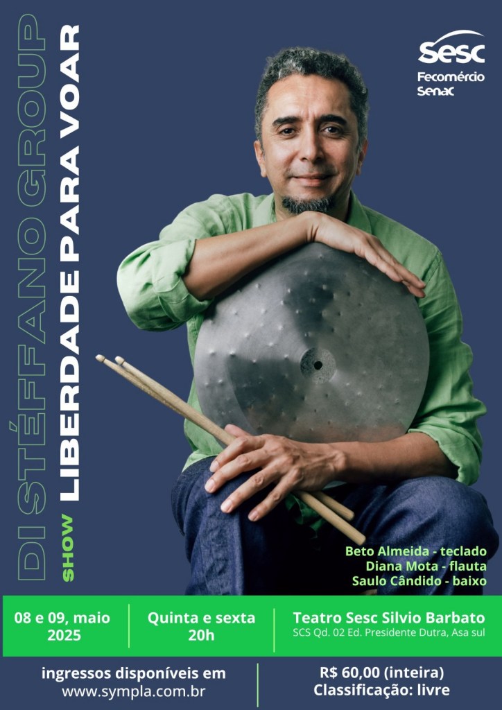 Com uma sonoridade que mistura o jazz contemporâneo ao afro jazz brasileiro, Di Stéffano apresenta composições autorais que evidenciam sua trajetória e versatilidade musical. No palco, ele estará acompanhado de um time de músicos experientes: o pianista Beto Almeida, a flautista e vocalista Diana Mota e o baixista Saulo Cândido.