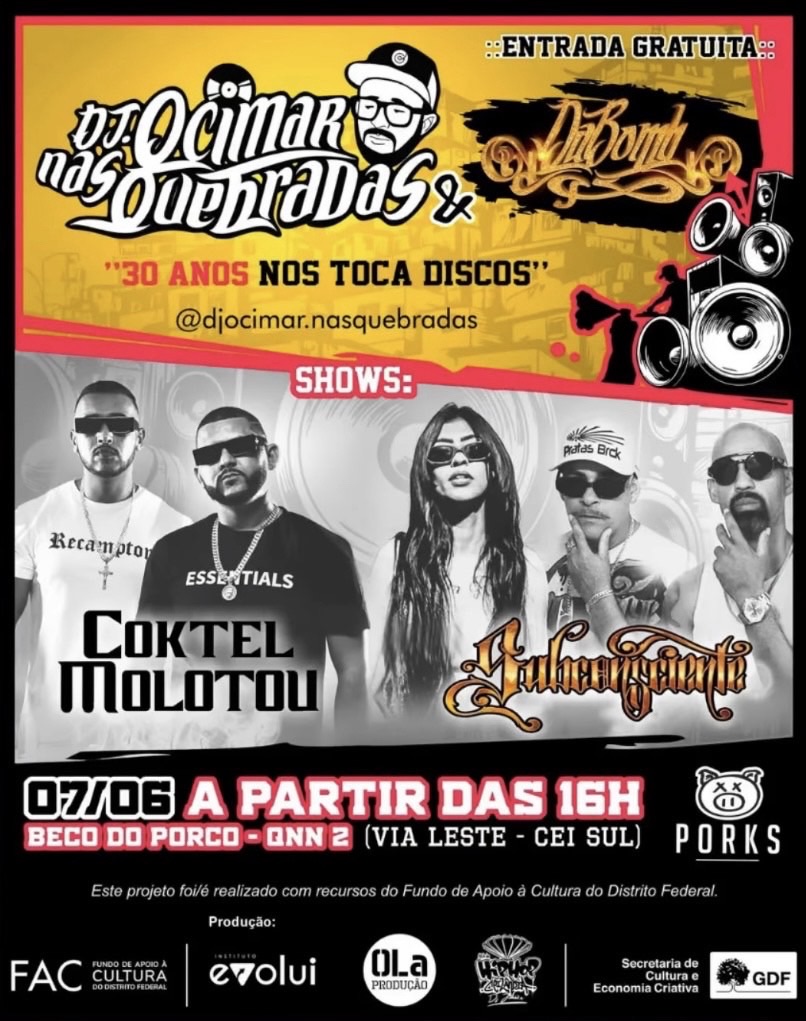 Muito além das pick-ups, DJ Ocimar é também educador e presidente do Instituto Evolui, onde promove ações de formação, cidadania e arte para a juventude das periferias. Com um trabalho que une música, educação e transformação social, ele setornou um verdadeiro símbolo de resistência e construção cultural no Distrito Federal e no país.