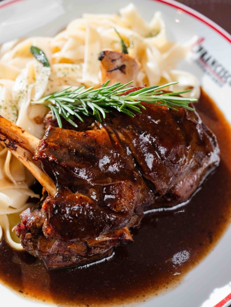 No restaurante Francisco, localizado no Pátio Brasil Shopping, os clientes encontram pratos que variam de carnes vermelhas a peixes e risotos que podem ser servidos de forma individual ou para compartilhar. Entre os destaques estão a Picanha Especial Angus com arroz e farofa de ovos (R$152, individual), a Costela de Tambaqui, servido com arroz com brócolis e farofa de ovos (R$125, individual), o Salmão com molho de maracujá servido com legumes salteados (R$125, individual), o Bacalhau à Portuguesa servido com arroz branco ou arroz com brócolis (R$229, para compartilhar e a Paleta de Cordeiro marinada e assada em baixa temperatura, servida com fettuccine na manteiga e sálvia (R$389, para compartilhar.