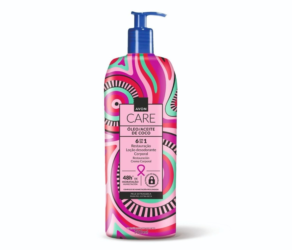 Ainda como parte da iniciativa em apoio à Campanha e ao Outubro Rosa, a marca relançou a embalagem especial da loção corporal Avon Care Óleo de Coco 700ml, um dos destaques do portfólio “Ofertas do Bem”. Com fórmula que combina Óleo de Coco e Vitamina, o produto proporciona nutrição intensa e hidratação prolongada para a pele extrasseca, e está disponível por R$32,99. Além da loção, o portifólio inclui produtos de beleza como esmaltes e batons, que unem propósito e consumo consciente. A iniciativa reforça o compromisso contínuo da Avon em promover ações que geram impacto positivo na vida das mulheres.