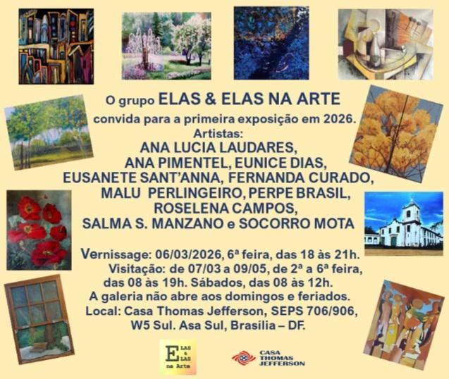 As artistas integrantes do grupo ELAS & ELAS NA ARTE, e a CASA THOMAS JEFFERSON, têm o prazer de convidá-los para a abertura da TEMPORADA 2026 DO CTJ HALL.