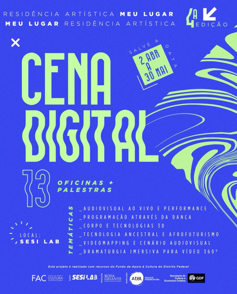 Realizado pelo Núcleo de Pesquisa da Cena – ATOL, com apoio do SESI Lab.e patrocínio do Fundo de apoio à Cultura do DF (FAC), o projeto se consolida como um das mais relevantes pontes entre a produção do Centro-Oeste e as tendências de vanguarda no cenário das artes. Após três edições de sucesso – que conectaram profissionais de nove estados brasileiros – a residência dá um salto qualitativo ao oferecer um mergulho profundo em ferramentas como programação criativa, coreocinegrafia, dança 3D, audiovisual expandido, vídeo 360° e afrofuturismo como prática de resistência cultural.