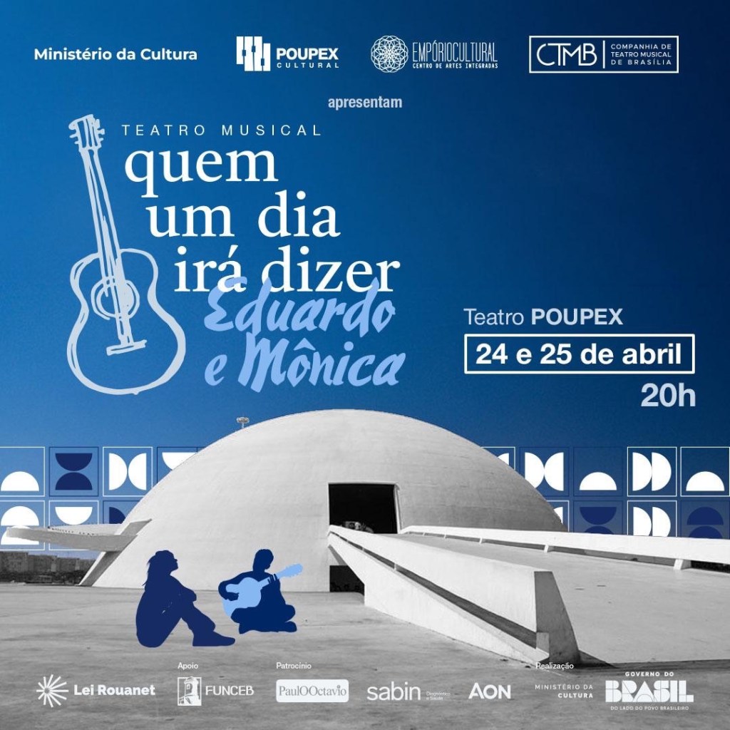 Brasília completa 66 anos em 21 de abril e, na mesma semana, o Teatro POUPEX apresenta um espetáculo especial em homenagem à cidade. Nos dias 24 e 25, às 20h, o público poderá assistir ao musical Quem Um Dia Irá Dizer – Eduardo e Mônica, uma releitura emocionante da história do casal eternizado pela Legião Urbana.