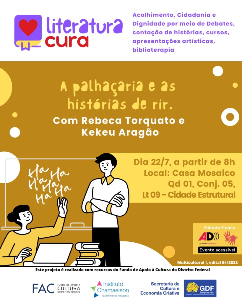 Hora do Conto Sábados e domingos às 11h (para bebês) e 15h Capacidade: 60 pessoas Acesso: Gratuito, mediante retirada de ingressos no site https://ccbb.com.br/ e na bilheteria do CCBB Brasília Classificação etária: Livre Local: Sala do Programa Educativo