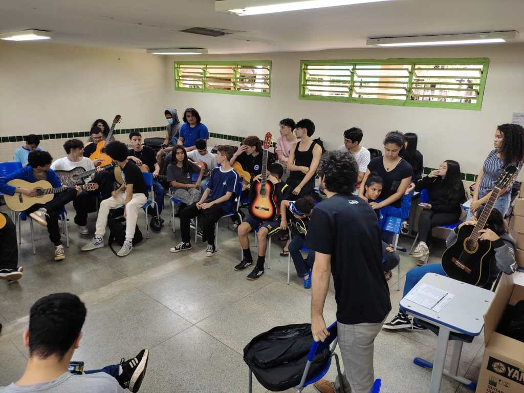 Os cursos abordam o estudo de cavaquinho, pandeiro, percussão e violão, além de abordagens teóricas como O Tempo e o Som: A História da Música e o ensino de Musibraille, para pessoas com deficiência visual. Esta parte do projeto irá atender ao todo 250 jovens, divididos em dez turmas com 25 alunos cada.