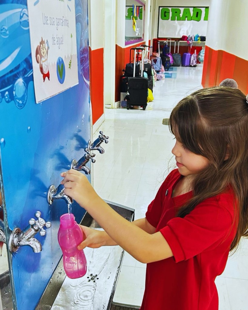 Os alunos da Escola Canadense de Brasília são incentivados a se hidratarem ao longo do dia nos diversos bebedouros espalhados pelas duas unidades, crédito: João Macedo/ Agência MiThi