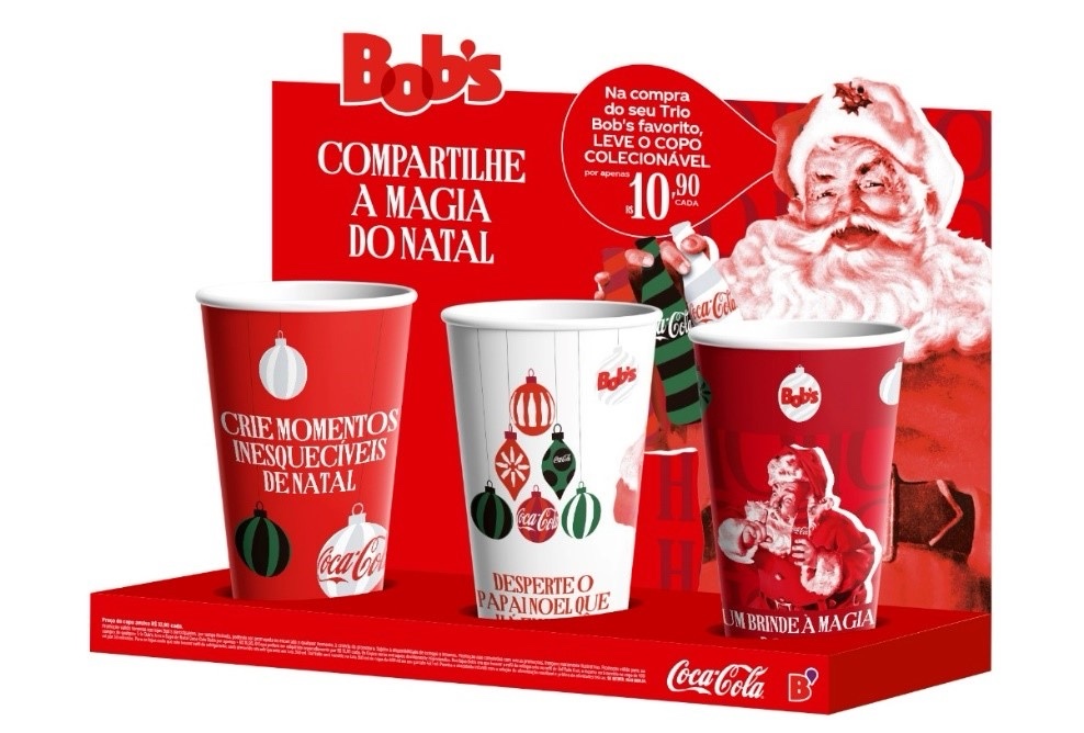 O Bob’s, primeira rede de fast food e franquia do setor no Brasil, e a Coca-Cola se uniram para uma parceria inédita, para celebrar o Natal. A campanha que vai até o dia 31 de dezembro, contempla o lançamento de três copos temáticos colecionáveis.