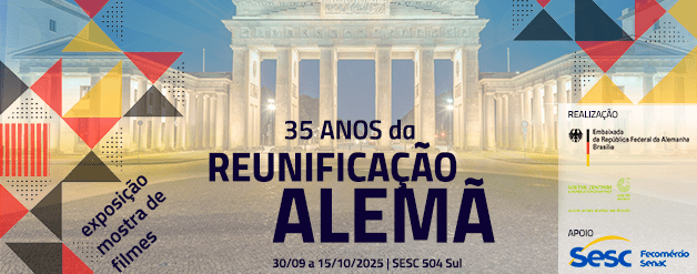 35 anos da Reunificação da Alemanha Data: 30 de setembro a 15 de outubro de 2025 Local: Sesc Estação 504 Sul Atividades: Exposição “Transformação no Leste. Vidas em transição” e mostra de filmes Entrada: gratuita Realização: Embaixada da Alemanha, Goethe-Zentrum Brasília e Sesc-DF