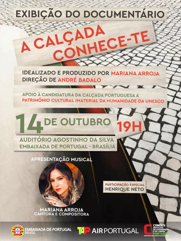 No dia 14 de outubro, às 19h, no Auditório Agostinho da Silva, na Embaixada de Portugal / Camões – Centro Cultural Português em Brasília, será exibido o documentário “A Calçada Conhece-te“, de Mariana Arroja, com direção de André Badalo.