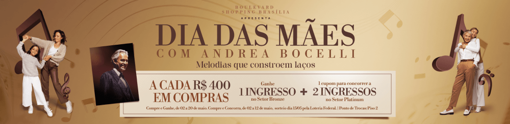 “Crescemos junto com Brasília. No nosso aniversário, nada mais belo do que uma homenagem que promova arte e cultura aos nossos clientes e visitantes. O evento é exclusivo e super interativo. Convidamos o público para uma celebração em dose dupla: o aniversário do shopping e os 64 anos da capital federal, num ambiente que intensifica o sentimento de pertencimento e afeto à cidade”, ressalta Renata Monnerat, gerente de Marketing do BrasíliaShopping.